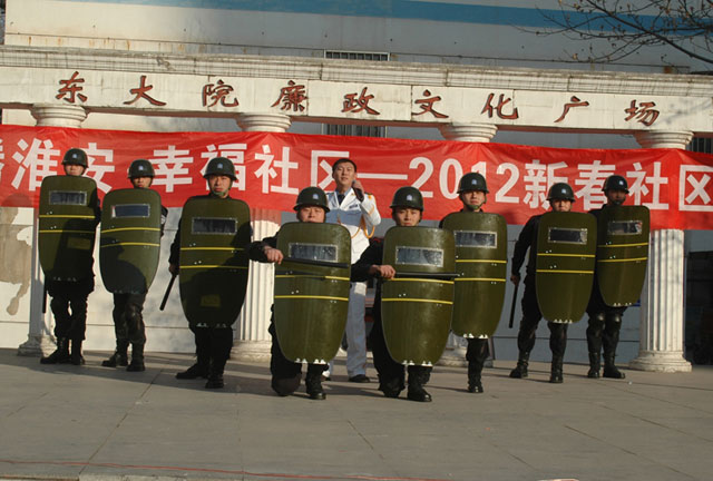 總公司迎春晚會的兩個節(jié)目《少年壯志不言愁》和《保安擒敵表演》應(yīng)邀參加演出。盡管天氣寒冷,但隊員們不懼嚴(yán)寒,精彩的演出博得了社區(qū)數(shù)百居民的陣陣掌聲。保安員走進(jìn)社區(qū),讓老百姓更加了解淮安保安,向普通百姓展示了淮安保安的豐富的企業(yè)文化。