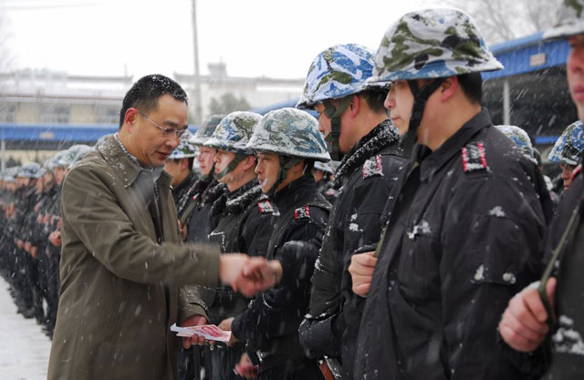 2月14日大年初一上午,總經(jīng)理婁伯翱、副總經(jīng)理王克、徐文剛以及公司黨總支委員、公司各部負(fù)責(zé)人一起冒雪慰問了執(zhí)行任務(wù)的武裝押運(yùn)員,婁伯翱總經(jīng)理代表黨總支向大家拜年并致以節(jié)日的問候和祝福。然后,婁伯翱總經(jīng)理在保安部陪同下,慰問了市國稅局、供電局、易初蓮花超市等人防執(zhí)勤點(diǎn);副總經(jīng)理王克和徐文剛分別驅(qū)車慰問外派保安隊(duì)員。