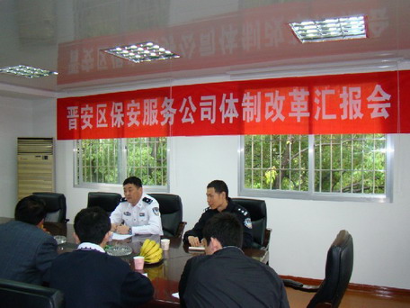 54,福建省公安廳治安管理總隊(duì)副總隊(duì)長(zhǎng)趙魯進(jìn)一行到福州市晉安保安服務(wù)公司調(diào)研工作。在認(rèn)真聽(tīng)取了福州市公安局治安支隊(duì)副支隊(duì)長(zhǎng)陳革和晉安區(qū)委政法委副書(shū)記、區(qū)綜治辦主任夏冬林就自招保安員監(jiān)管和晉安區(qū)保安企業(yè)改制工作情況匯報(bào)后,趙副總隊(duì)長(zhǎng)強(qiáng)調(diào):一是保安企業(yè)和保安隊(duì)伍不能脫離公安機(jī)關(guān)主導(dǎo)和監(jiān)管。福州市根據(jù)保安條例精神,結(jié)合本地實(shí)際,選擇晉安區(qū)保安服務(wù)公司作為保安企業(yè)改制的試點(diǎn)單位,對(duì)現(xiàn)有保安企業(yè)如何改制進(jìn)行了有益的探索。保安企業(yè)改制必須依法進(jìn)行,堅(jiān)持公安機(jī)關(guān)的主導(dǎo),保安企業(yè)和保安隊(duì)伍不能脫離公安機(jī)關(guān)監(jiān)管,確保這支隊(duì)伍朝著正確健康方向發(fā)展;二是做強(qiáng)做大保安隊(duì)伍。要充分認(rèn)識(shí)保安服務(wù)市場(chǎng)國(guó)際化趨勢(shì)和保安工作所面臨的實(shí)際問(wèn)題,充分發(fā)揮多年來(lái)保安企業(yè)先行的優(yōu)勢(shì),大力拓展保安服務(wù)領(lǐng)域,努力提高保安服務(wù)科技含量和服務(wù)質(zhì)量,讓現(xiàn)有保安企業(yè)和保安隊(duì)伍茁壯成長(zhǎng),進(jìn)一步做大做強(qiáng)國(guó)有資產(chǎn),以更加強(qiáng)大的競(jìng)爭(zhēng)力迎接市場(chǎng)的開(kāi)放。三要加強(qiáng)自招保安員管理。要加強(qiáng)自招單位保安工作和保安隊(duì)伍規(guī)范化建設(shè),加強(qiáng)物業(yè)保安等自招保安員日常監(jiān)督管理工作,科學(xué)合理地安排保安員考試發(fā)證工作,加快保安員十指指紋信息的采集和審查工作。