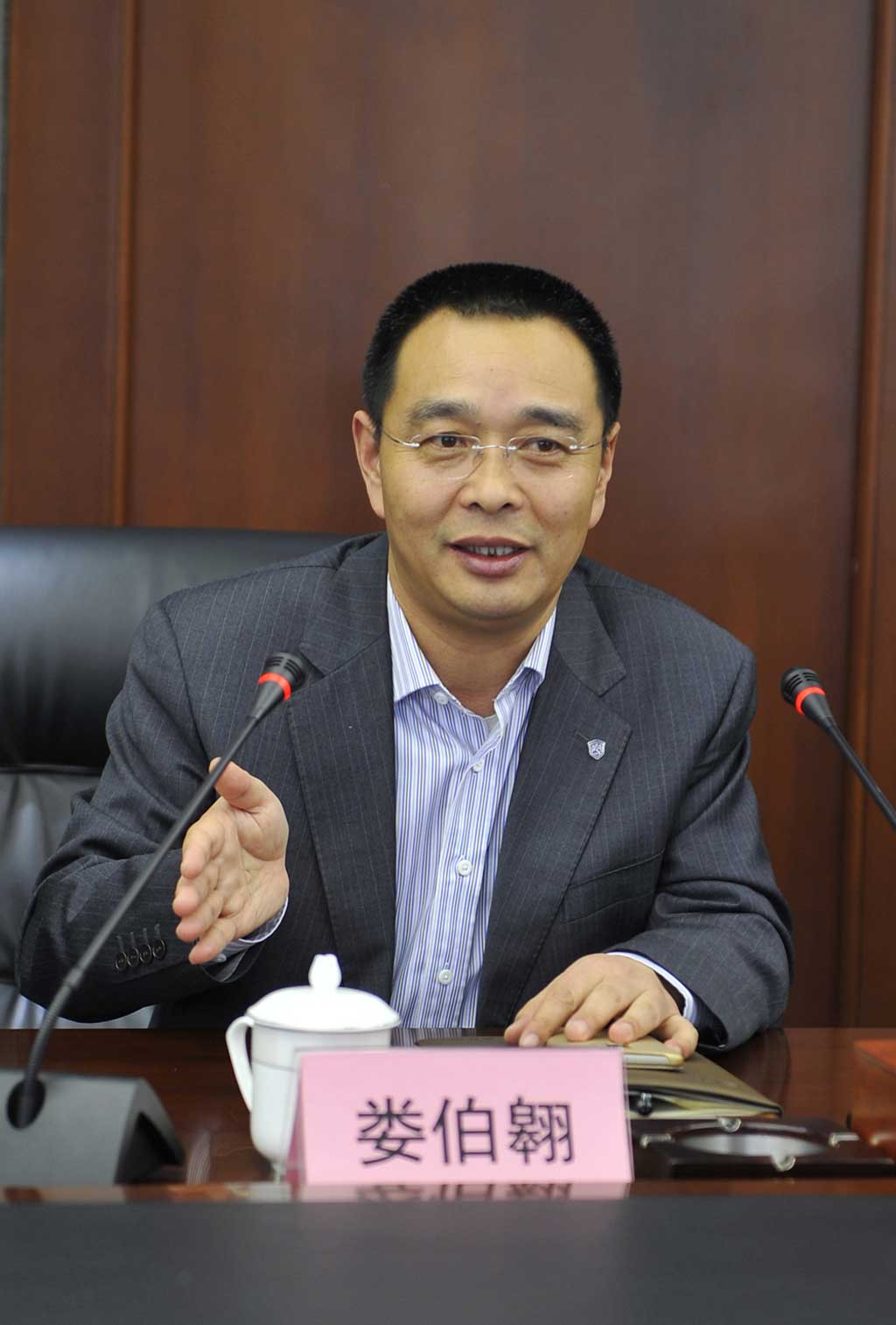 淮安市公安局治安支隊支隊長郝群主持座談會并講話。