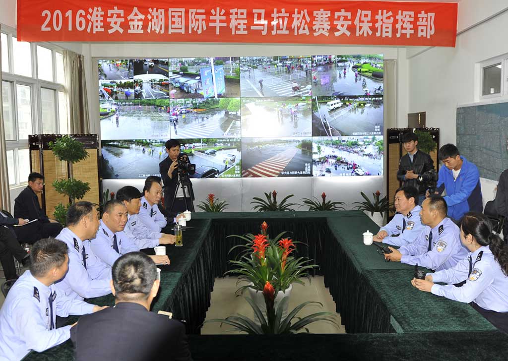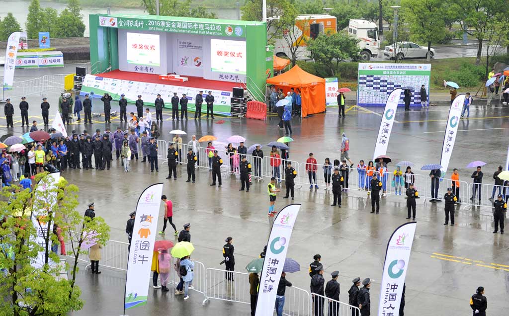 由中國田徑協(xié)會(huì)、江蘇省體育局、淮安市人民政府聯(lián)合主辦,金湖縣人民政府、淮安市體育局、江蘇省體育產(chǎn)業(yè)集團(tuán)承辦的“2016淮安金湖國際半程馬拉松”比賽,于2016年5月15日上午8:30分在金湖縣荷花廣場(chǎng)鳴槍開賽,來自世界各地及我國長(zhǎng)跑愛好者10000余名運(yùn)動(dòng)員參加了比賽?;窗彩斜0卜?wù)總公司派出700余名安保人員冒雨執(zhí)勤,提升了保安隊(duì)伍在復(fù)雜天氣條件下的快速反應(yīng)和安保執(zhí)勤的能力。